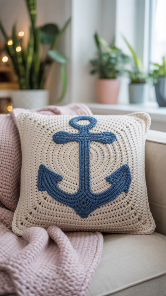 8. Kissen mit gehäkeltem Anker