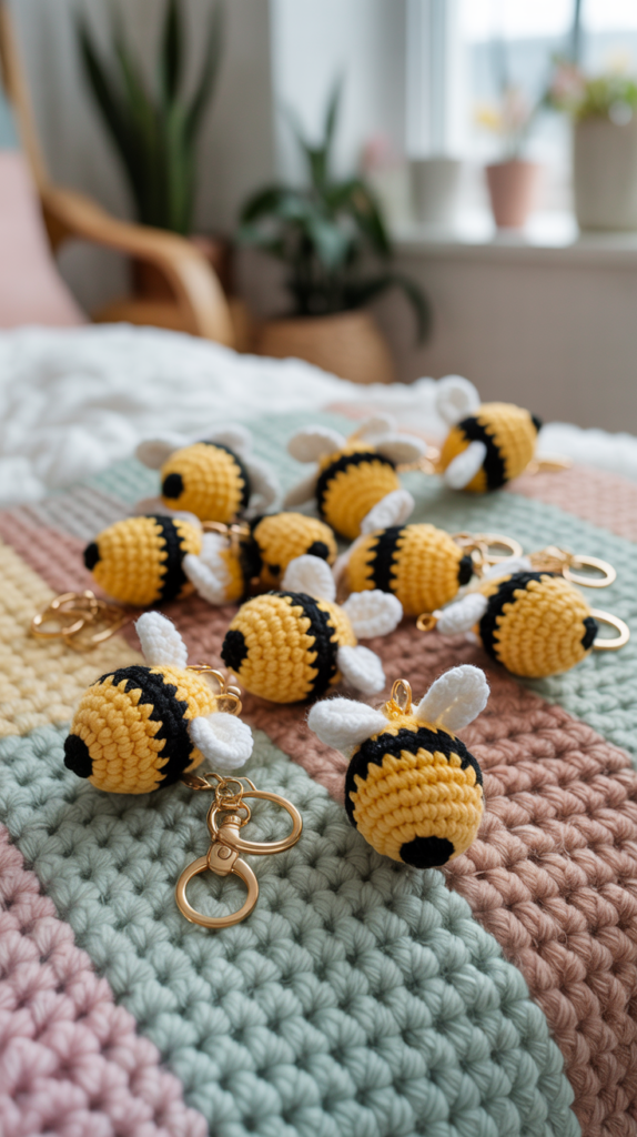- Häkle mehrere Bienen nach dem Muster des Schlüsselanhängers.