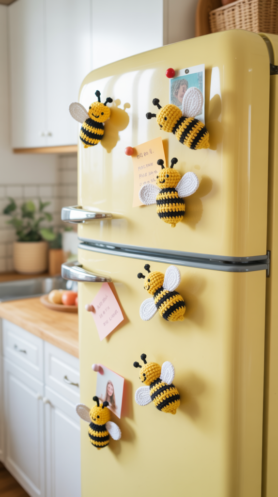 Wähle Magnete mit hoher Haftkraft, um Notizen sicher zu halten. Ein Tropfen Textilkleber extra fixiert alles dauerhaft. So nutzt du die Biene täglich in der Küche oder am Arbeitsplatz.