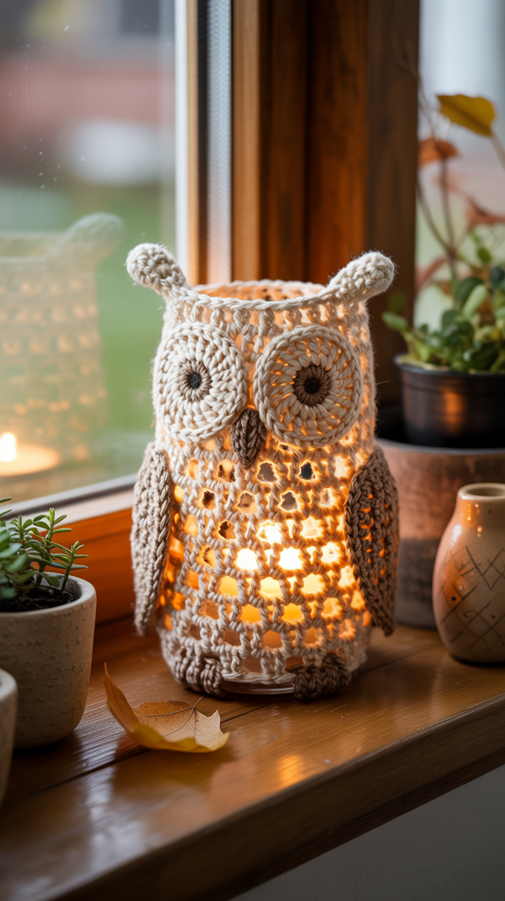Variety of shade or size as desired. An LED tea light is safer and does not generate heat. With a bit of crocheted leaves, the holder looks even more playful and goes well with the autumn table decorations.