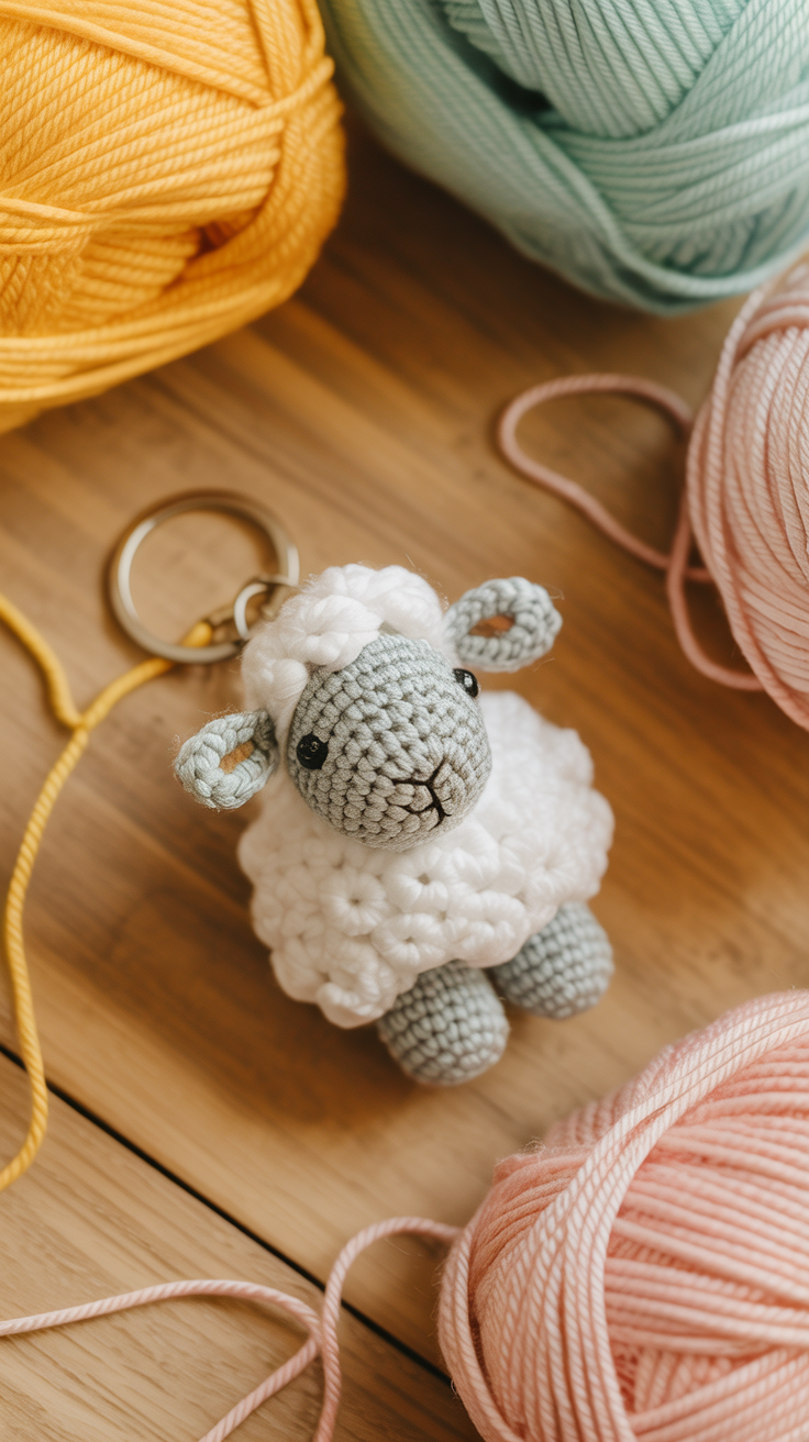A sheep-shaped keyring fits well on bags or keychains. Such small figures are created in less than an hour. Thanks to the compact size, you crochet it in a short time. He is sturdy and always an eye-catcher.