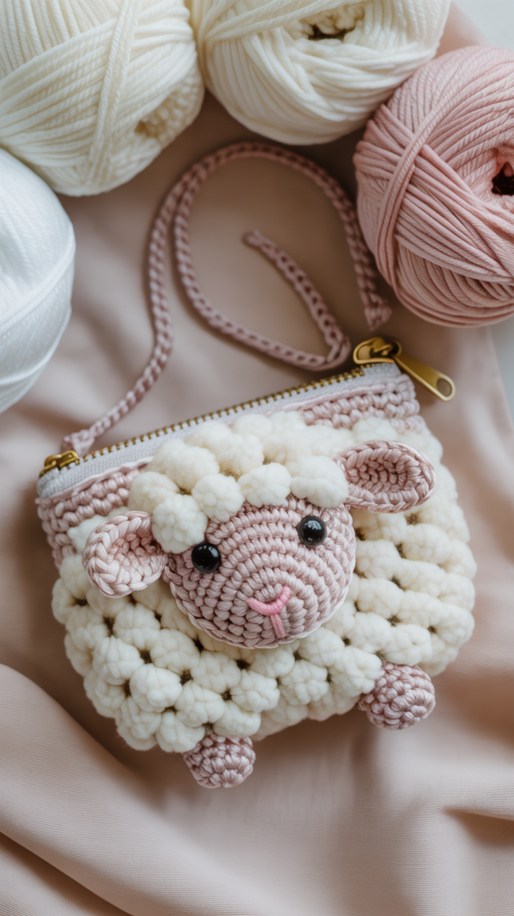 A small sheep-shaped bag is ideal for coins or headphones. It is easy to hang on the key or belt. The design is playful and practical at the same time.