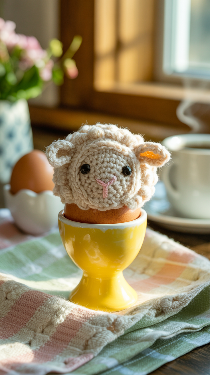 A sheep-shaped egg warmer brings fun at every breakfast table. The sheep sits securely on the breakfast table and is easy to remove. It keeps the egg warm and provides a charming pattern. The warming remains short and practical.