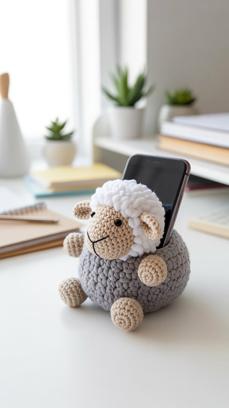 A cell phone holder in the form of a sheep’s head is practical at the desk or bedside table. It holds the device at the optimum inclination. Also, the motif looks friendly.