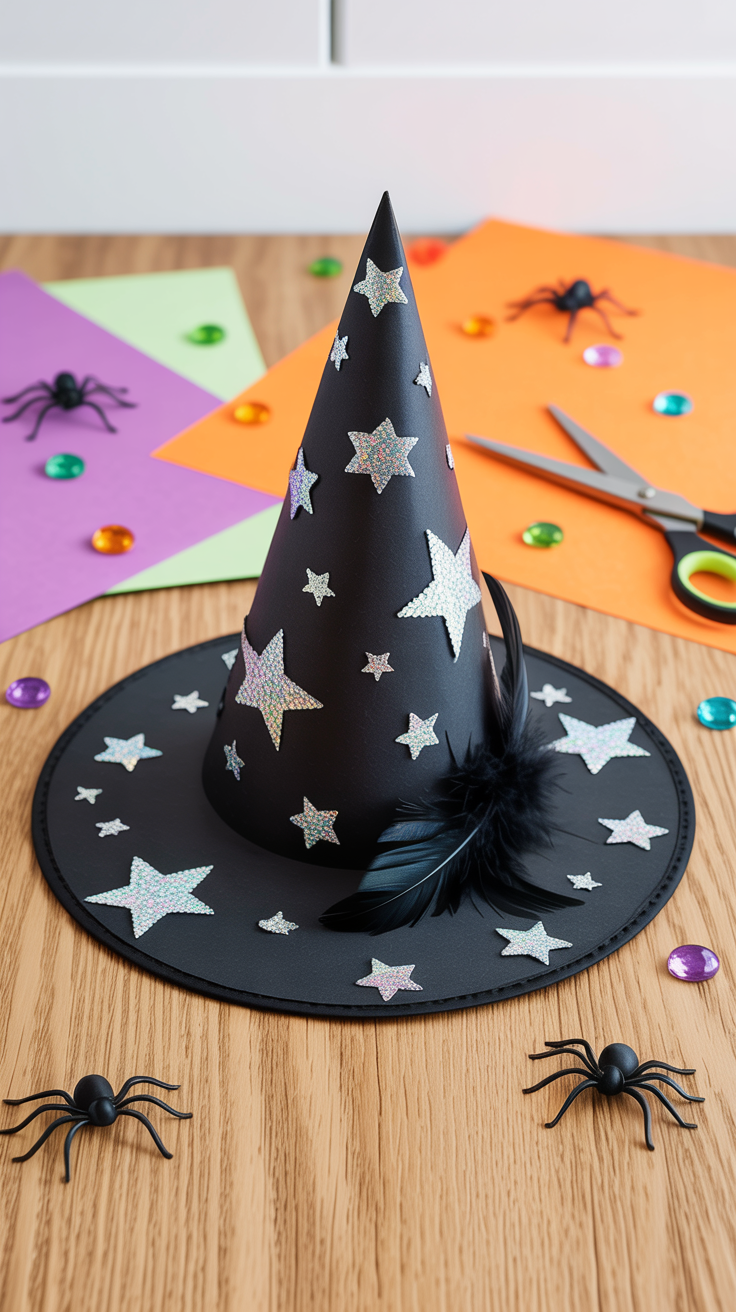 Ein Hexenhut gehört zu jedem Fasching! Mit ein bisschen schwarzem Karton und Glitzer entsteht im Handumdrehen ein klassischer, aber beeindruckender Hut.