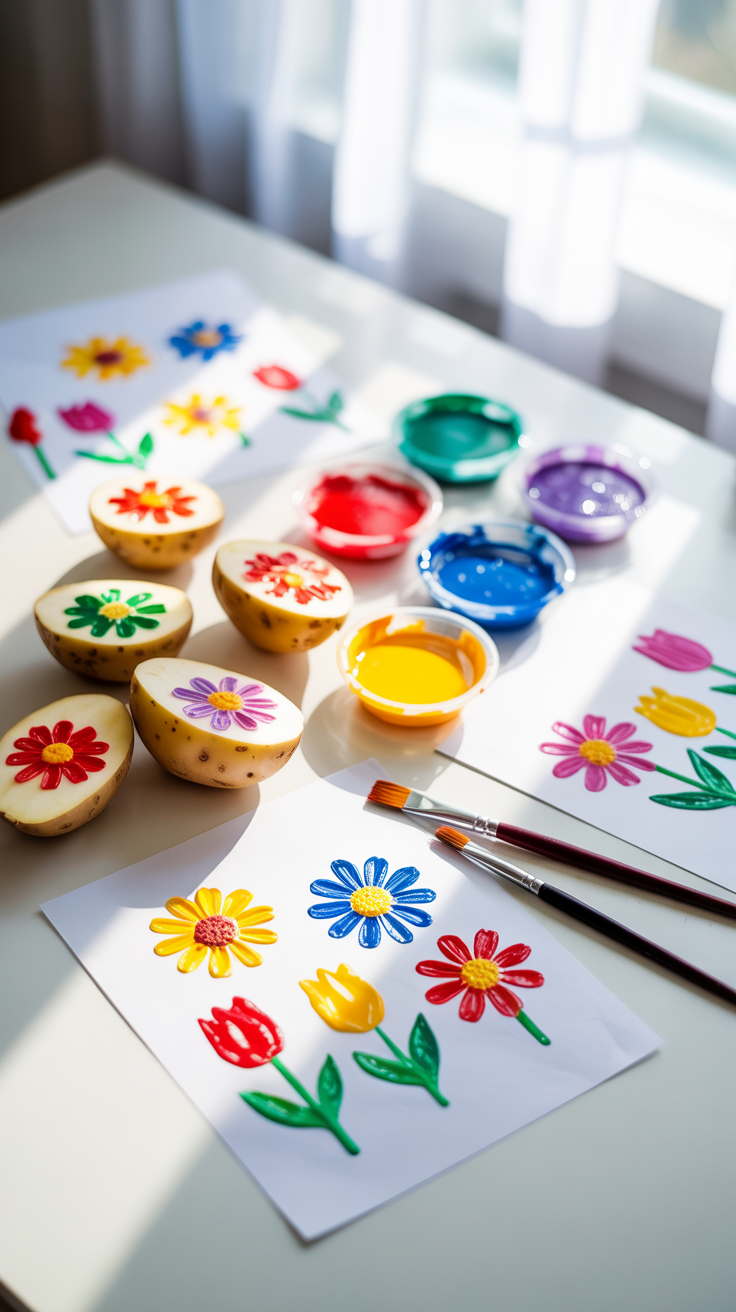 - Schneide aus halben Kartoffeln Blumenformen heraus.