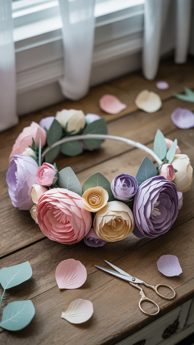 - Bastle kleine Blumen und Blätter aus buntem Papier.