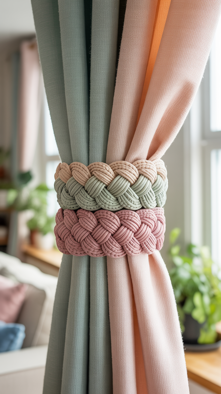 - Lege die Borte um die Gardine und knote sie.