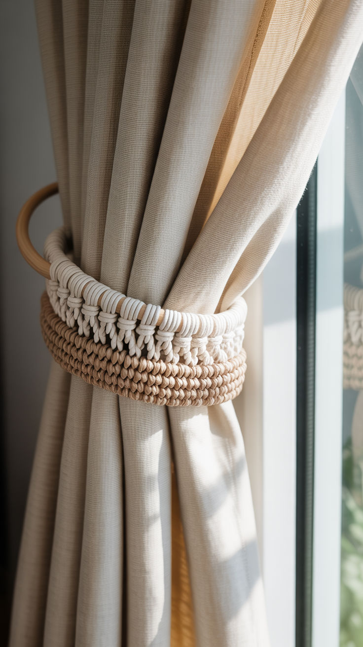 Der klassische Knoten wirkt zurückhaltend. Er passt zu vielen Einrichtungsstilen. Du erhältst einen Halter, der sich leicht anpassen lässt.
