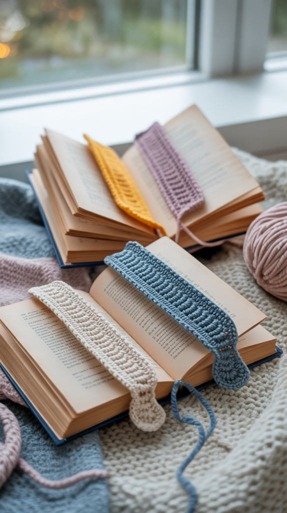 Ein gehäkeltes Lesezeichen begleitet jeden. Mit deinem Namen oder einem kleinen Muster wirkt es persönlich. Es ist ein schmaler Begleiter, ideal für Buchliebhaber.
