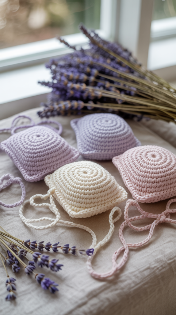 - Häkle Seiten in festen Maschen, fülle Lavendel ein und schließe oben.