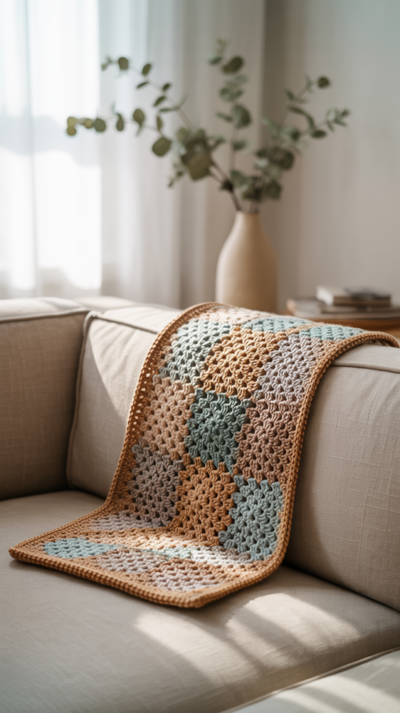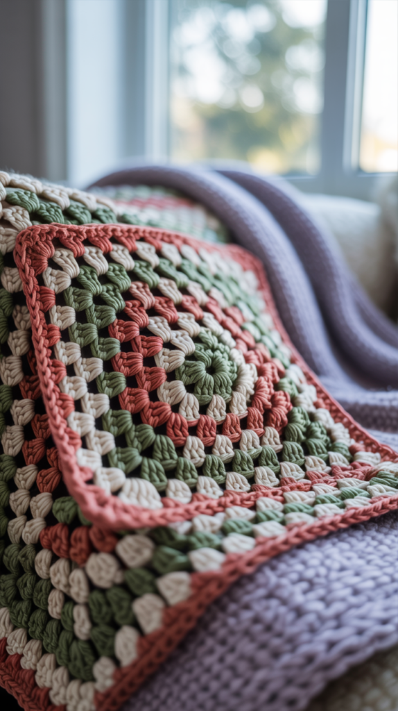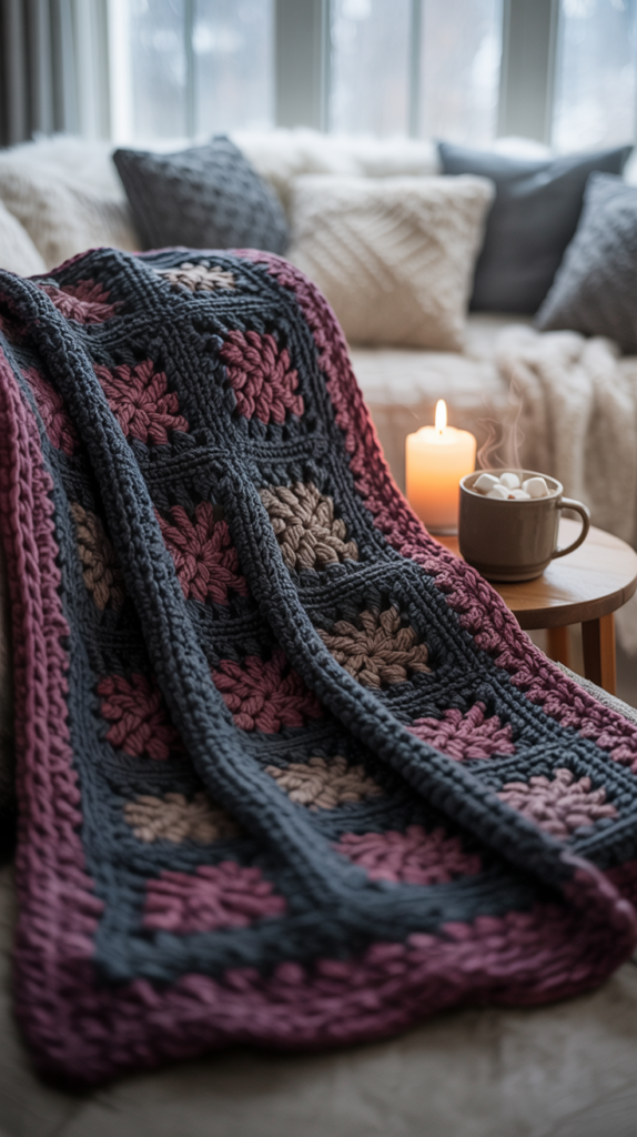 Für kalte Tage wähle ich flauschiges Garn mit Wolle. Dicke Grannys halten warm und schmiegen sich beim Lesen oder Fernsehen an. Strukturrunden mit halben Stäbchen sorgen für Volumen.