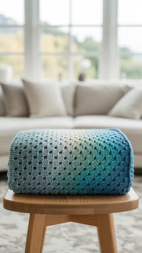 Der Ombre-Effekt verleiht deiner Decke einen sanften Verlauf von hell nach dunkel. Durch die Abstufung entsteht Tiefe und ein fließender Übergang. Ideal für moderne Wohnstile.