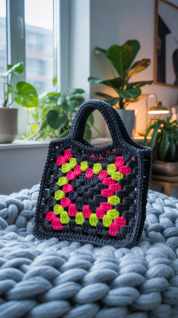 Taschen aus Granny Squares verbinden Kreativität mit Alltagstauglichkeit. Du kannst Farben frei kombinieren, Muster variieren und Größe sowie Form an deinen Bedarf anpassen. Ob schlicht, auffällig oder verspielt – jedes Modell bekommt seinen eigenen Charakter.