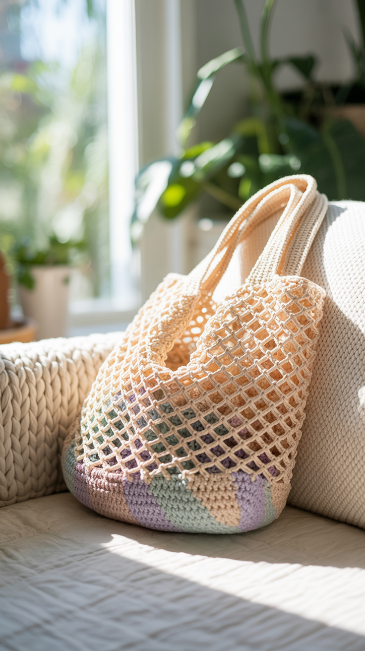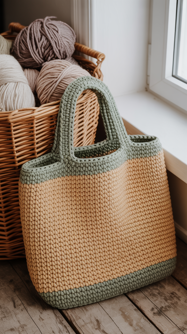 Die klassische Tote Bag ist ein zeitloser Begleiter. Sie bietet viel Platz für Einkäufe oder Bücher. Ich häkle sie gern in Kontrastfarben damit der Rand betont wird. Das gerade Design lässt sich leicht an den persönlichen Stil anpassen.
