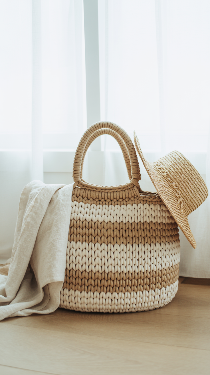 Für rechteckige Modelle arbeite ich häufig in Reihen. Einheitliche Stichabstände sorgen für einen sauberen Rand. Farbwechsel nutze ich dezent zur Betonung von Streifen oder Mustern. Bei offenen Strukturen kommen Stäbchen in Variationen zum Einsatz. Die Auswahl einer passenden Nadelstärke definiert Dicke und Stand der Tasche. Ein fester Boden gibt Stabilität. Wer möchte, ergänzt ein Innenfutter für besseren Halt und Schutz.
