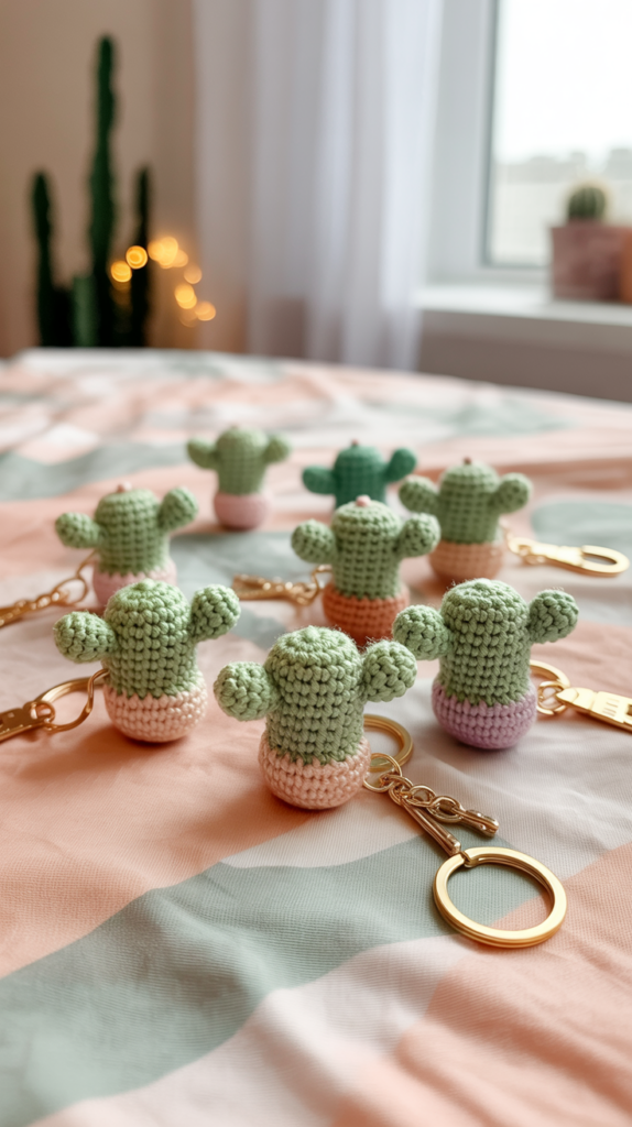 Dieser winzige Kaktus landet an jedem Schlüsselbund. Er ist leicht und begleitet dich überall hin. Mit wenigen Stichen entsteht ein praktischer Glücksbringer. Der Anhänger fühlt sich gut an und bleibt flexibel, wenn er im Weg ist.