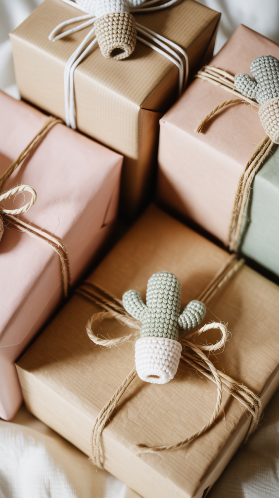 Ein gehäkelter Kaktus verleiht jedem Paket eine persönliche Note. Er ist leicht und kann am Band des Geschenks baumeln. Jeder Gast freut sich über diesen kleinen Blickfang.