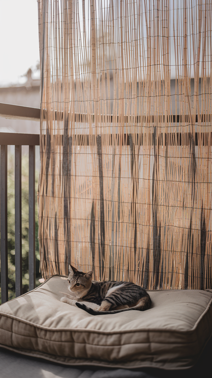 Ein leichter Windschutz macht den Balkon gemütlich. Katzen mögen frische Luft. Sie brauchen aber Ruhe, wenn es zieht. Ein kleiner Schutz hilft ihr, länger draußen zu bleiben.