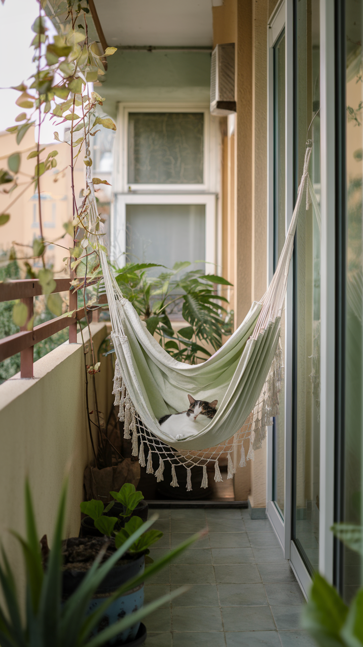 Eine Hängematte wirkt wie ein kleines Nest. Der weiche Schwung beruhigt viele Katzen. Sie fühlen sich geborgen und leicht.