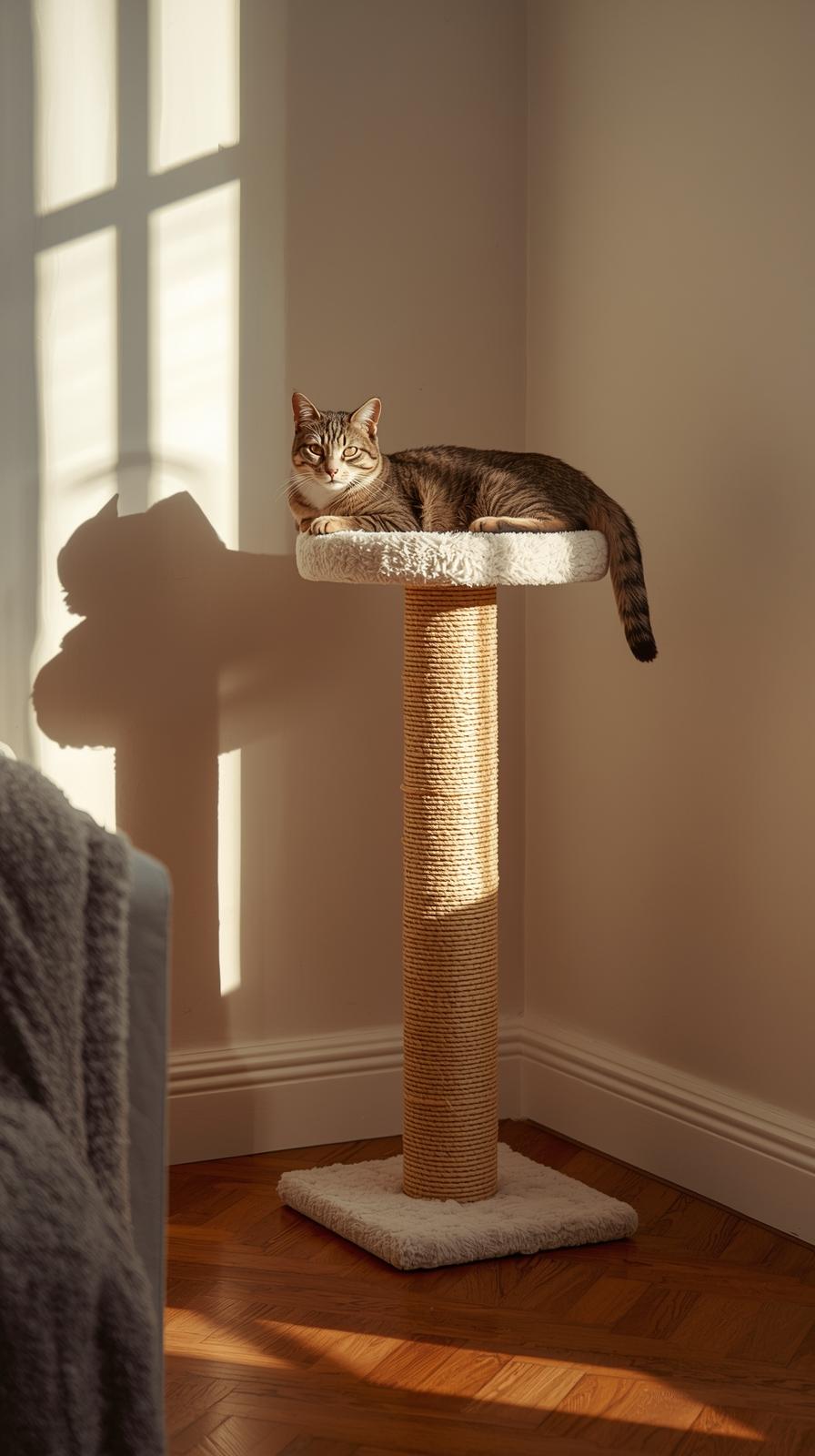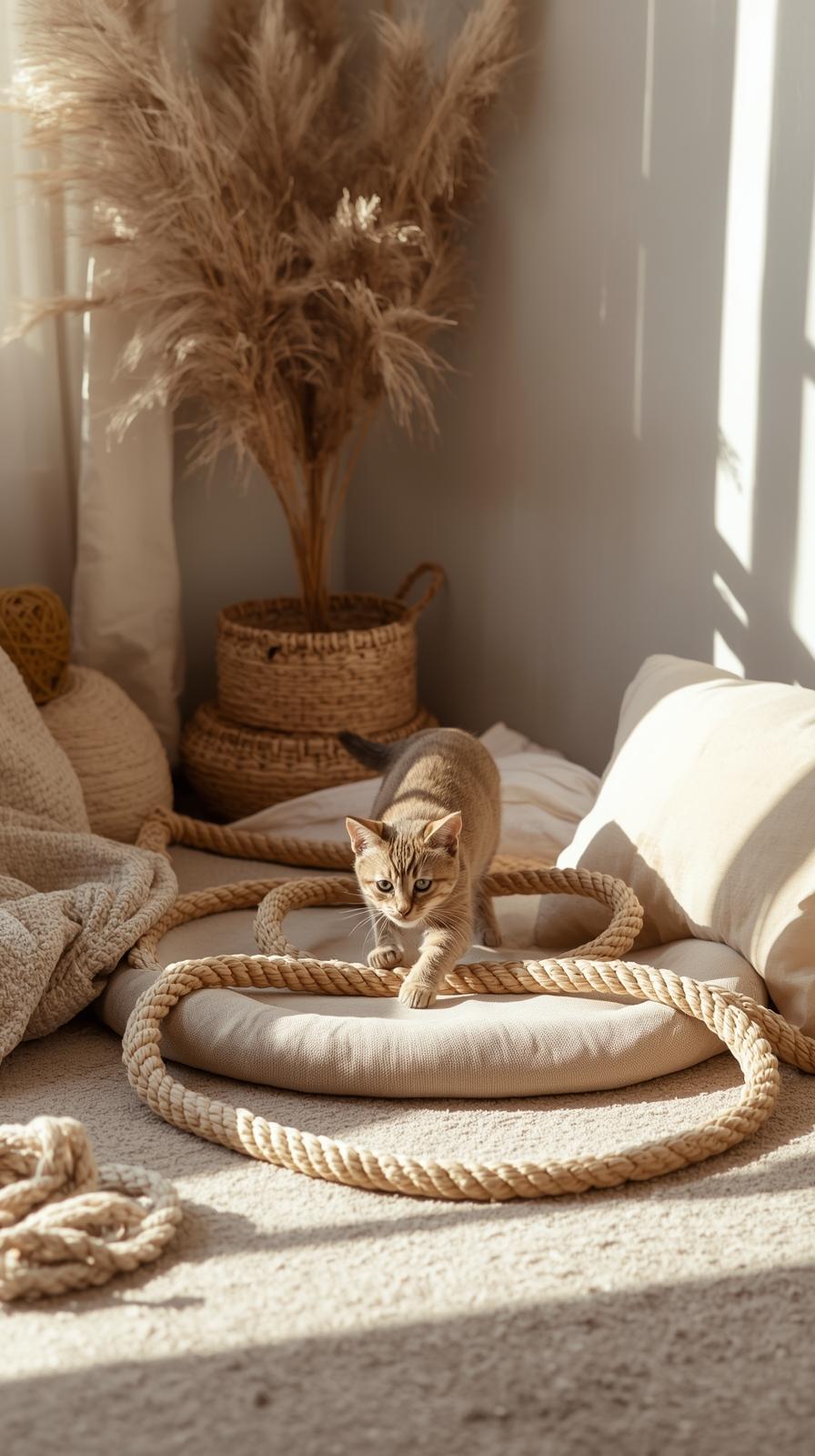 Sisalseil ist für Katzen ein Klassiker. Es bietet Struktur, riecht natürlich und lädt zum Kratzen ein. Eine eigene kleine Zone damit anzulegen wirkt wohnlich und funktional.