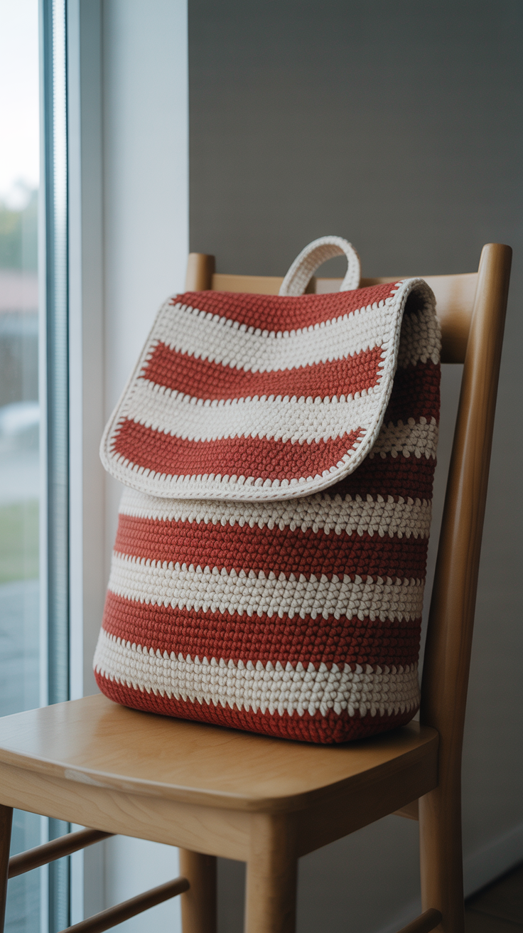 Streifen lassen sich einfach variieren und passen zu jeder Garderobe. In diesem Rucksack wechseln sich zwei Farben ab. Das Ergebnis ist ein klarer, ordentlicher Look. Du kannst die Streifenhöhe anpassen.