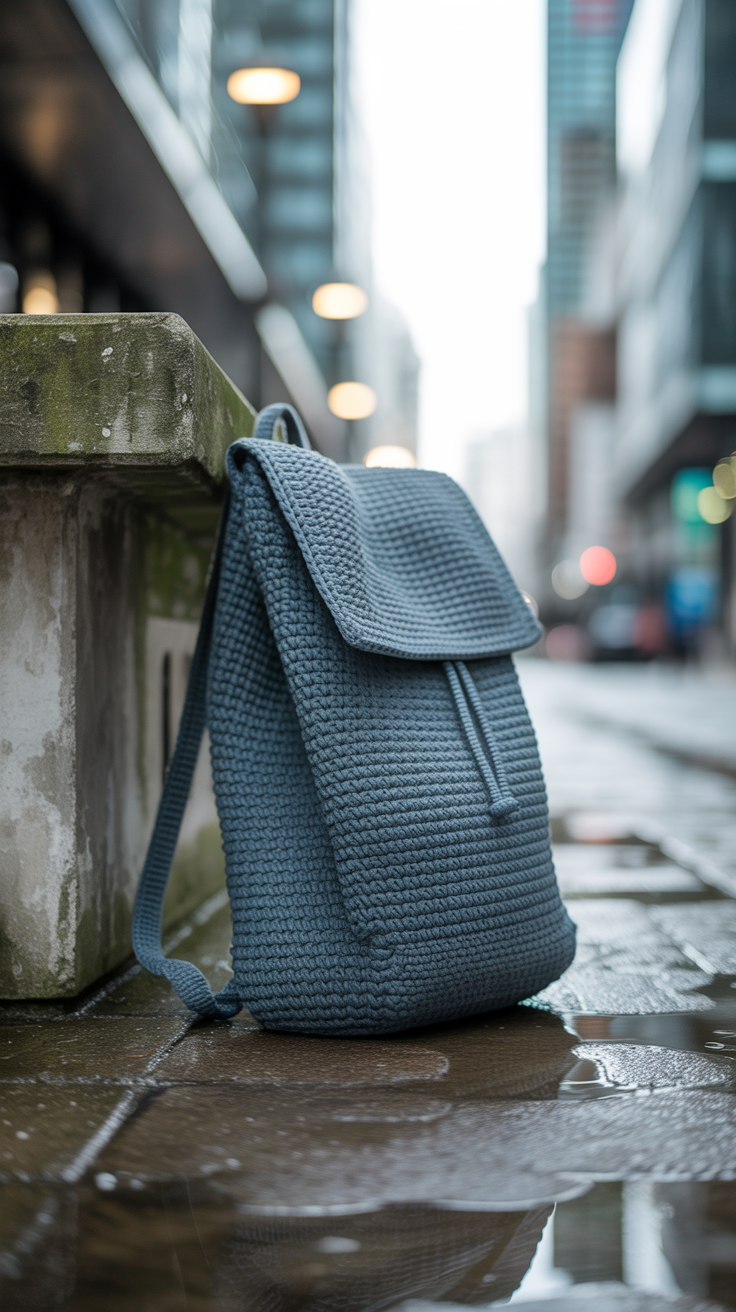 Für regnerische Tage nutze ich wasserabweisendes Garn und imprägniere den Rucksack nachträglich. So bleibt der Inhalt trocken. Ideal für Alltag und Reisen.