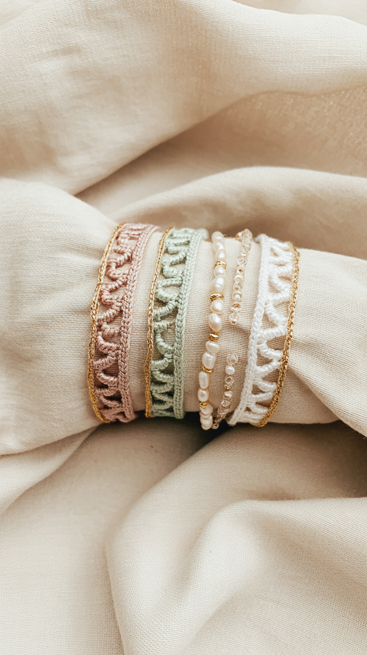 Ein dünnes Armband aus Garn wirkt zart und passt zu vielen Outfits. Du kannst mehrere Bänder übereinander tragen. Durch das Muster entsteht ein filigraner Schmuck. Das Projekt eignet sich gut als Mitbringsel. Das Armband lässt sich schnell anpassen. Mit dünnem Garn entsteht eine feine Optik.