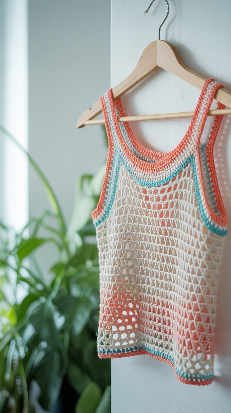 Für mehr Struktur kannst du Musterrippen einarbeiten. Wer mag ergänzt Träger mit einer einfachen Kettenkante. Farbige Streifen lassen dein Top lebendig wirken.