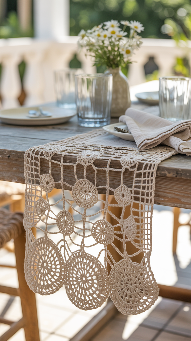 Ein gehäkelter Läufer wertet jeden Esstisch auf und schafft eine einladende Atmosphäre. Er eignet sich gut für den Balkon oder Garten. Durch offene Muster wirkt er leicht und dekorativ. Er lässt sich schnell in der Breite anpassen. Das Muster kannst du frei wählen.