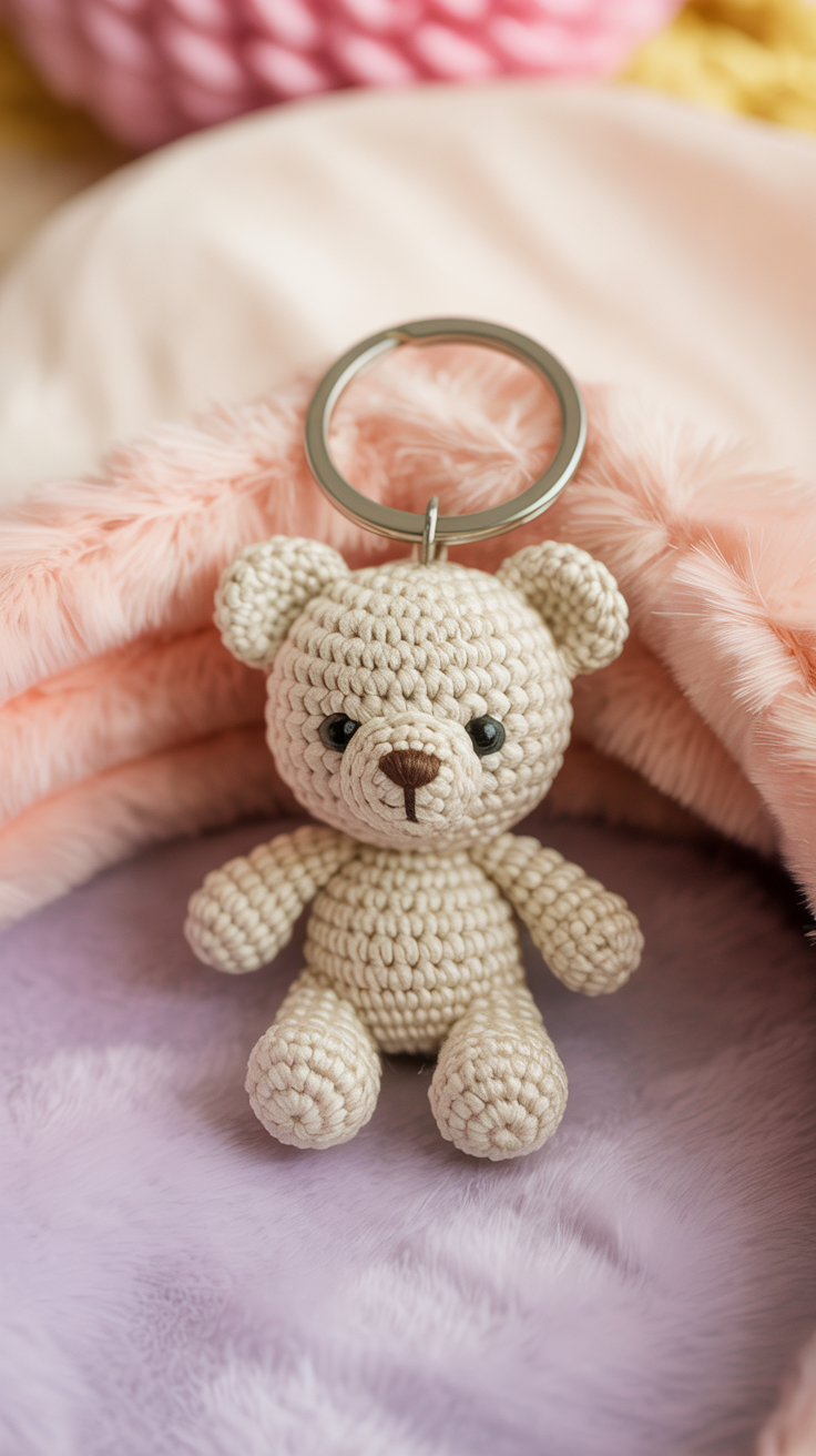 Ein Mini-Teddy ist handlich und passt an jeden Schlüsselbund. Er eignet sich als Mitbringsel oder als kleine Aufmerksamkeit. Das Muster ist kurz und bietet schnellen Erfolg.