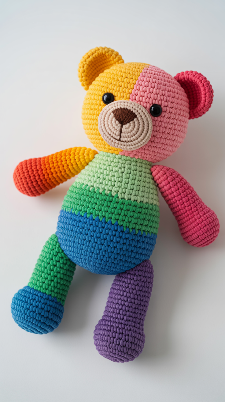Ein Regenbogenteddy wirkt fröhlich und modern. Er eignet sich für alle, die gerne Farbe ins Heim bringen. Jeder Abschnitt bekommt eine neue Farbe.