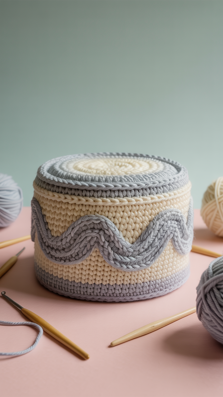 Hier trifft schokoladiger Garn auf sahnige Kontraste. Die Idee eignet sich als Geschenk oder Dekoration. Du lernst, wie du verschiedene Farben kombinierst und die Sahneschicht plastisch gestaltest.