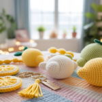 Für die meisten Häkel-Torten nutze ich Grundmaschen wie Kettmasche, Luftmasche und feste Masche. Damit baue ich die Basis auf und forme die Kreise. Farbwechsel setze ich gezielt ein, um Sahneschichten oder Fruchtfüllungen darzustellen. Das Ein- und Ausblenden von Farben geschieht ohne Knotensalat.