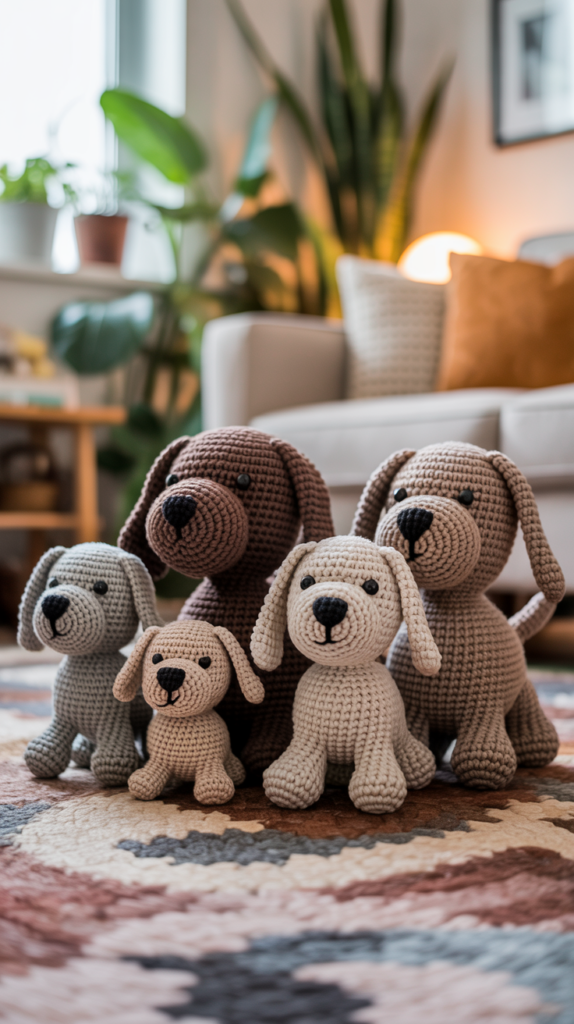 Variiere mit Ohrformen, um verschiedene Hunderassen anzudeuten. Durch Farbwechsel am Rücken kannst du ein Fellmuster erzeugen. Achte auf kompakte Maschen.