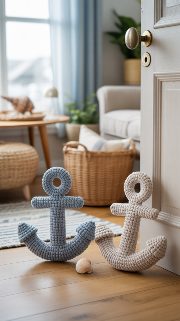 Ein maritimer Anker als Türstopper eignet sich für Bad, Flur oder Gartenhaus. Die Form wirkt sommerlich und verleiht jedem Raum einen frischen Akzent. Durch die robuste Struktur hält er die Tür sicher offen.