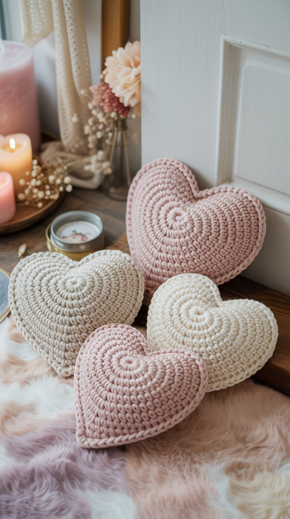 Platziere die Füllung zuerst am unteren Ende, damit das Herz schwer genug bleibt. Du kannst Spitzenmuster an den Rändern einsetzen. Ein Mix aus festen Maschen und Reliefstäbchen sorgt für einen interessanten Look.