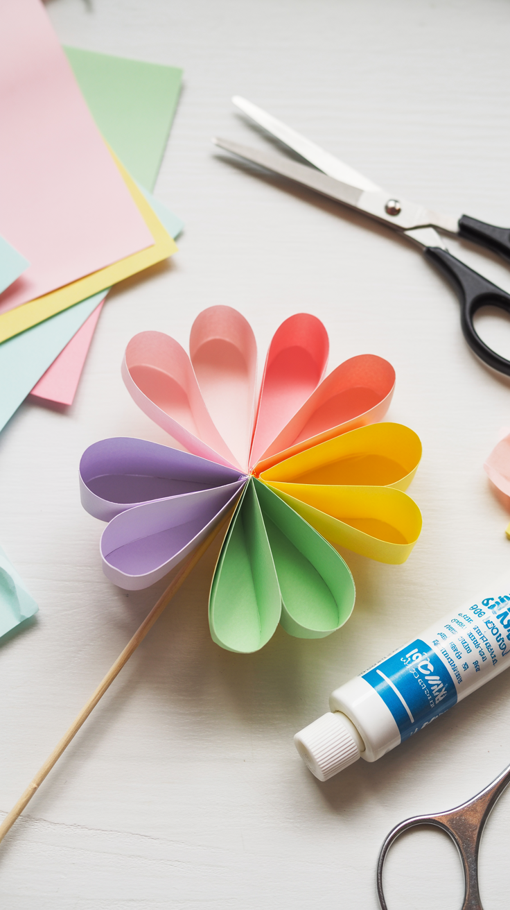 - Klebe sie kreisförmig zusammen, sodass sie eine Blume bilden.