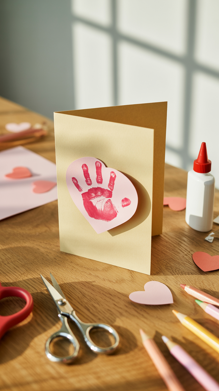 Nichts ist persönlicher als der kleine Handabdruck deines Kindes in Herzform. Diese Karte ist ein liebevolles Andenken und eine schöne Übung für Feinmotorik und Achtsamkeit. Kinder lernen, wie viel Freude ein selbstgemachtes Geschenk bereiten kann – und Eltern bekommen ein echtes Erinnerungsstück.