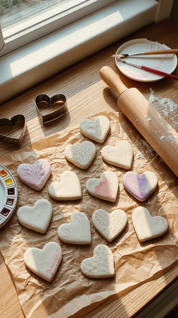 Ganz einfach: Herzen in allen Formen! Ob Karten, Girlanden, Salzteigherzen oder kleine Geschenke im Glas – alles, was Liebe ausdrückt, passt perfekt.