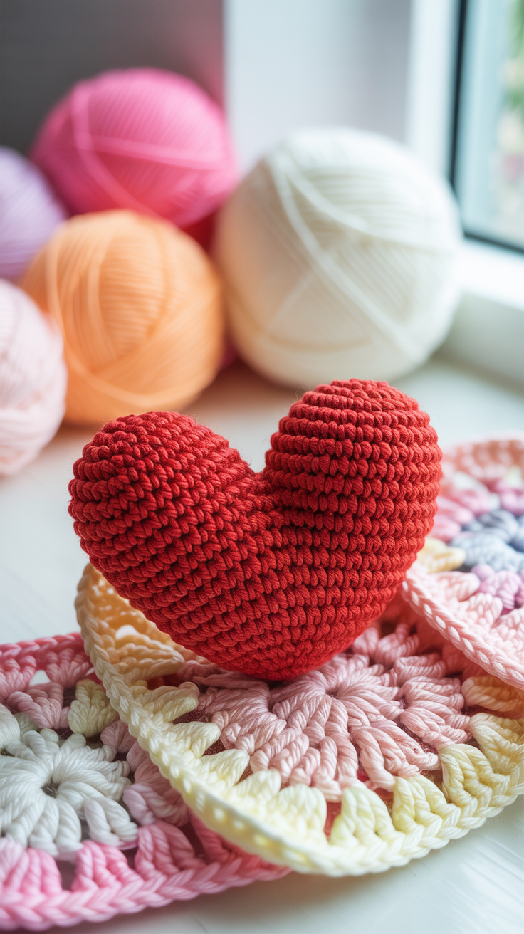 Ein kleines Amigurumi-Herz eignet sich als Schlüsselanhänger oder Geschenkbeilage. Es hat eine weiche Füllung und behält seine Form. Die runde Gestaltung wirkt freundlich und persönlich.