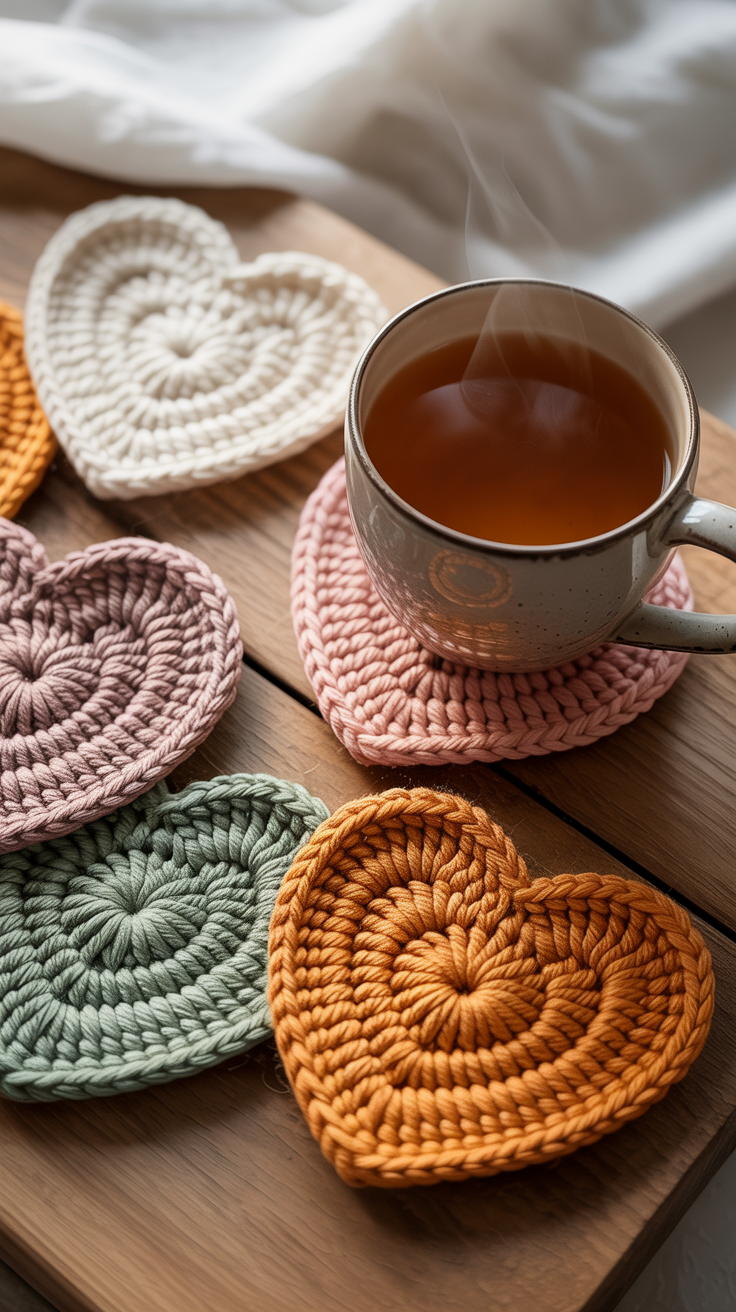 Untersetzer in Herzform schützen den Tisch vor Feuchtigkeit. Sie sind dekorativ und schnell gefertigt. Du kannst mehrere Farben kombinieren.