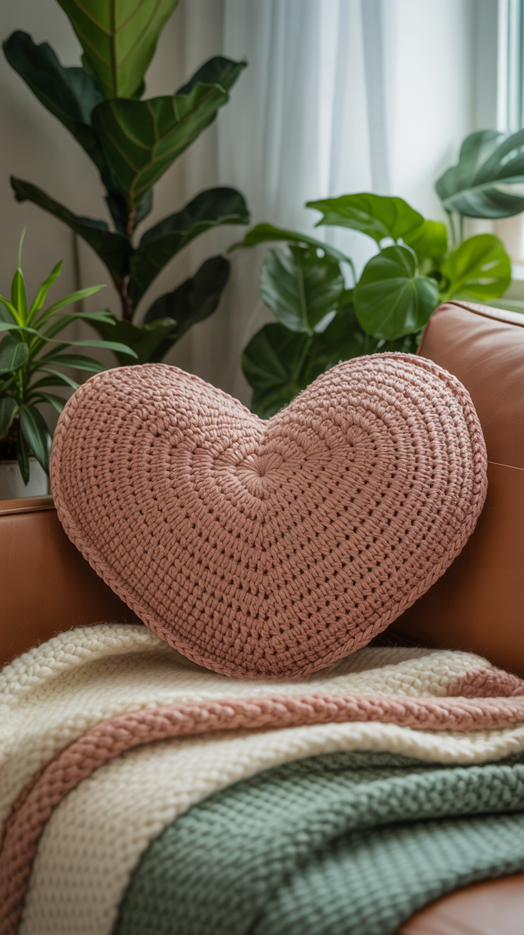 Ein herzförmiges Kissen wertet das Sofa auf und wirkt einladend. Es ist weich und formstabil. Die Größe lässt sich nach Wunsch anpassen.