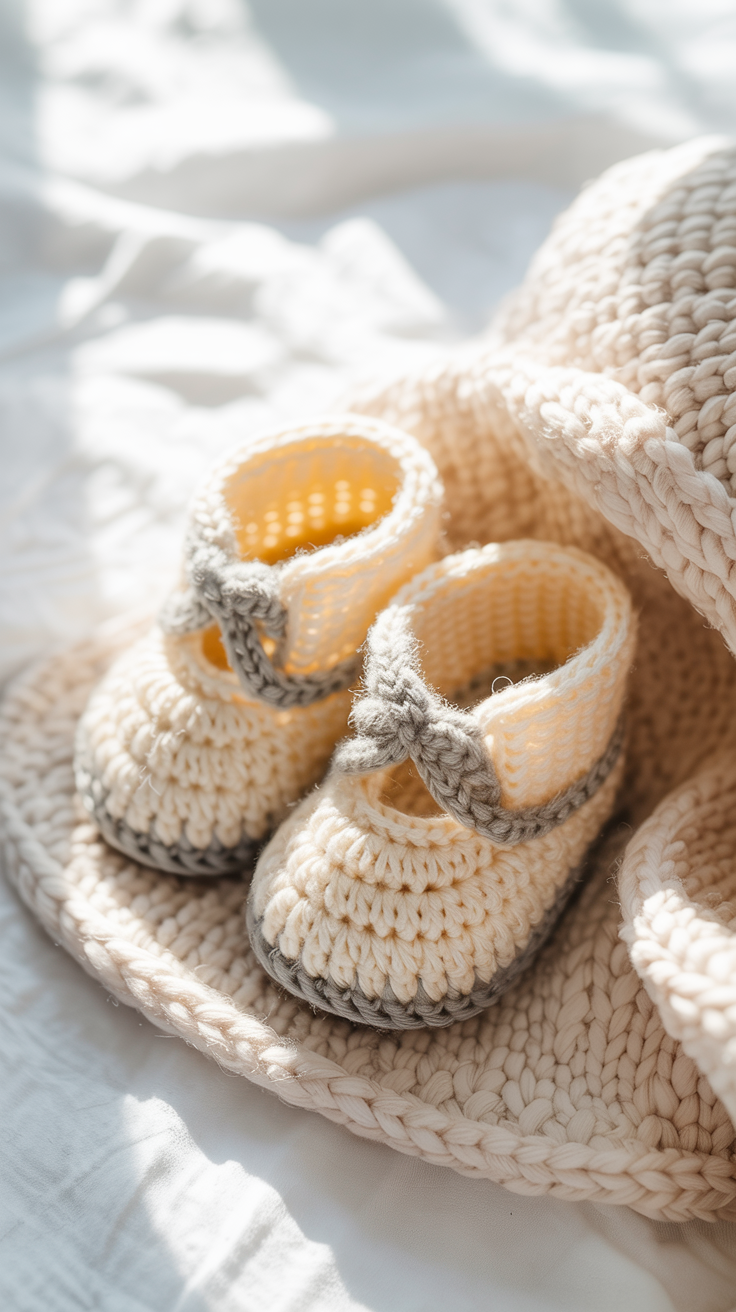 Eine farbige Kante hebt Details hervor. Kleine Applikationen wie Herzchen verleihen Charme. Die Schuhgröße lässt sich einfach anpassen, indem du mehr Reihen häkelst.
