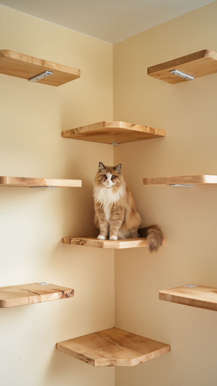 Katzen lieben es, hoch oben zu sein. Alles im Blick, keiner kommt ran, das gibt Sicherheit. Wenn deine Wohnung klein ist, nutz die Wände. Regale, Kletterbretter, kleine Brücken. Deine Katze klettert, springt, balanciert. Und du hast gleichzeitig ein cooles Design-Element.