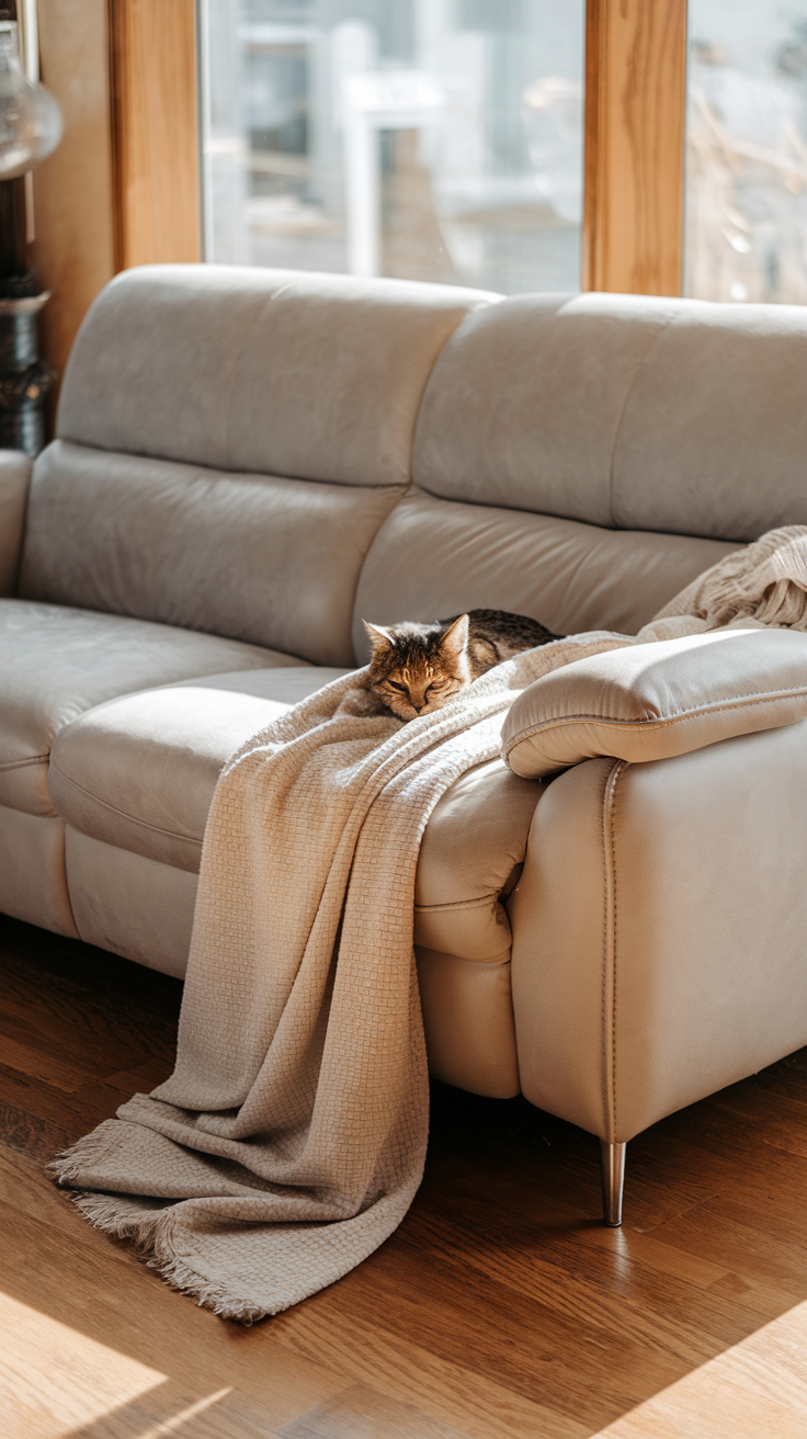Mikrofaser oder feste Webstoffe sind super. Die sind robuster und lassen sich besser absaugen. Einfache Überwürfe oder Decken helfen zusätzlich. Du kannst sie waschen, wenn sie voller Haare sind, und dein Sofa bleibt länger schön.